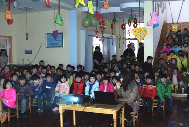 整节课围绕“发生火灾怎么办”、“危险物品我不玩”、“独自在家”、“不接受陌生人礼物”等主题和孩子们展开互动,交流,并播放影像资料,让孩子们通过动画片,学习遇到危险时的应急、处理方法。主讲老师还通过讲故事、读儿歌的方式,让孩子们了解更多安全方面的知识,学会在日常生活中更好的保护自己。