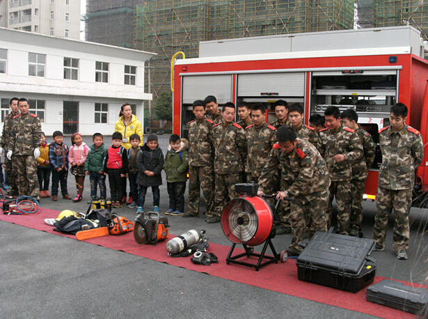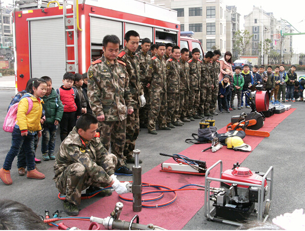 孩子们近距离接触消防中队,心情激动而又好奇,不住地向消防员提出这样或那样的问题,虽然天真,但消防员们仍认真地一一作答。