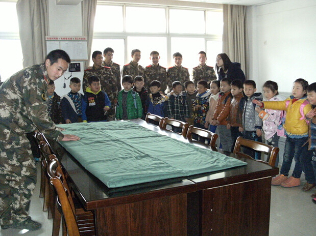 参观过程中,为了让小朋友们能够更加直观的了解各种消防器材的具体用途,中队消防员不仅向小朋友们认真介绍了消防车和相关消防器材,还就如何使用紧急救援气垫、呼救器、切割机等器材进行了现场演示。孩子们还参观了消防队员的休息室。看到那整齐的床铺和生活用品,孩子们都不由的发出了惊叹声。一位消防员现场演示叠军被,小朋友们看的目不转睛。