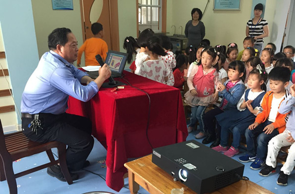 为提高全体师生的安全意识和自我保护能力, 55日下午 ,春晖幼儿园邀请城南派出所鲁警官为大班幼儿开展了一场安全教育知识讲座。