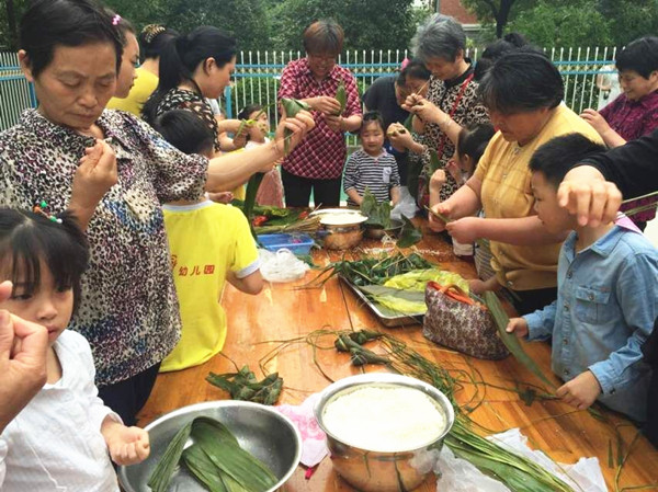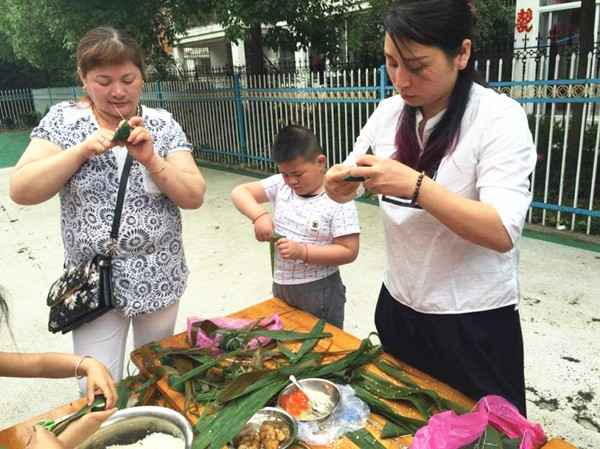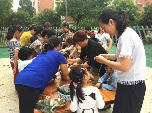 孩子们与妈妈或者奶奶一道,哼着童谣,按照既定的步骤,自己动手,愉快地包裹着不同口味的粽子,既亲身感受到了端午节的文化,也增强了动手能力,丰富了生活经历。(李芳)