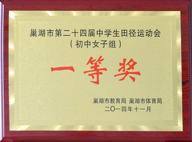 2014年11月,我校运动员获得巢湖市第二十四届中学生田径运动会初中女子组一等奖。