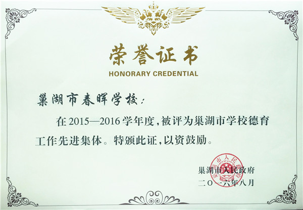 我校被评为巢湖市学校德育工作先进集体