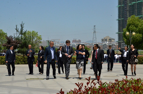 春晖学校校长朱必忠在欢迎仪式上致辞,希望通过本次交流加强双方合作,也希望通过交流与合作,推动两校教师互访与学生互动,建立联谊学校,进而推动两市建立联谊城市。