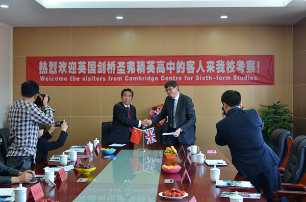 英国剑桥圣弗精英高中招生和市场部主任格雷格先生(Mr.Greg)对春晖学校的热情接待表示诚挚的感谢,并表示将适时促成剑桥圣弗精英高中校长、英国私立教育委员会主席Stuart Nicholson先生来春晖学校交流、访问。英国剑桥圣弗精英高中是位于剑桥市中心的一所知名的顶尖私立高中,成立近四十年,因其为国际学生和英国本土学生提供的优越条件而被全球广泛认可,每年有包括英国和国际学生(40%的英国本土学生/60%的欧盟和国际学生)在内的近200名学生就读。该校采取小班制教学,能让学生在生活和学习中享受到个性化服务。近五年的升学中,该校申请牛津和剑桥大学的成功率达到申请人数的50%!