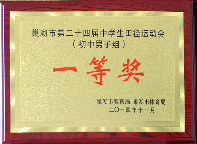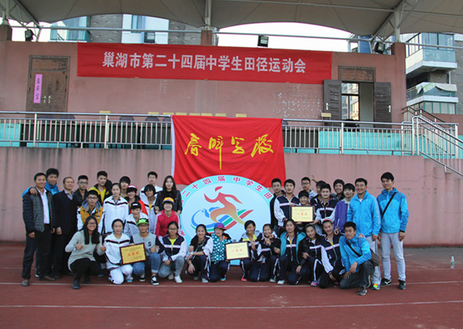 巢湖市第24届中学生田径运动会于11月1-3日在市一中体育场隆重举行。我校代表队在本届运动会上喜摘桂冠,取得了初中女子组一等奖、初中男子组一等奖、高中女子组二等奖和多项个人比赛第一名的好成绩。