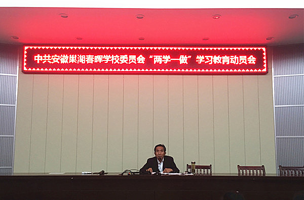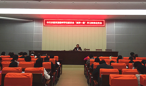 为深入学习贯彻习近平总书记系列重要讲话,推动“全面从严治党”向基层延伸,4月28日晚,春晖学校党委在亚父校区报告厅召开了“中共安徽巢湖春晖学校委员会‘两学一做’学习教育动员会”。学校全体党员参加了此次会议。