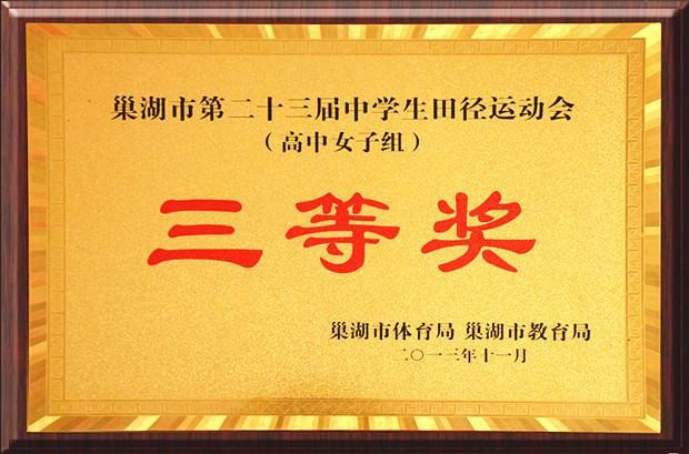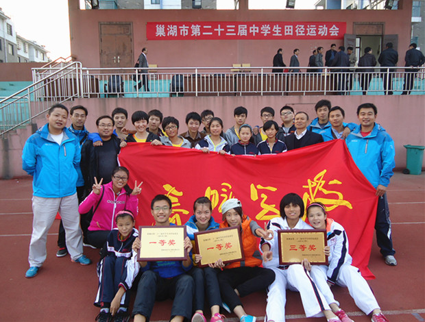 巢湖市第二十三届中学生田径运动会于2013年11月1日—3日在市一中体育场隆重举行。我校代表队在本届运动会上大放异彩,取得了初中女子组一等奖、初中男子组一等奖、高中女子组三等奖和多项个人比赛前三名的好成绩。