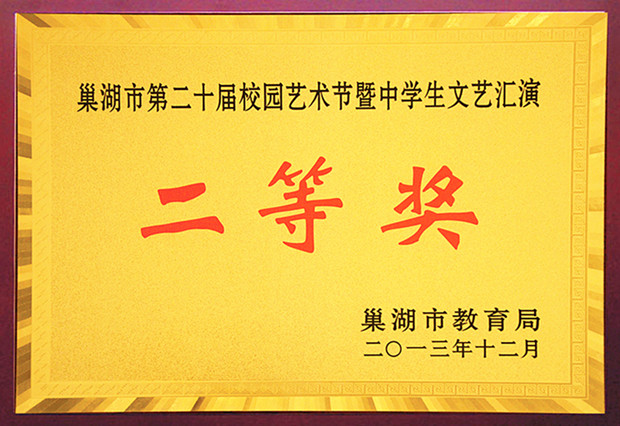 热烈祝贺我校舞蹈队在巢湖市第20届校园艺术节文艺汇演中荣获二等奖
