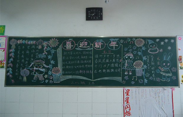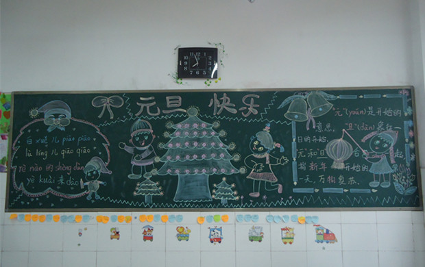 新年来临,为了烘托快乐、祥和的节日气氛,营造浓厚的校园文化氛围,小学部与元旦前组织开展了以“庆元旦 迎新年”为主题的黑板报评比活动。
