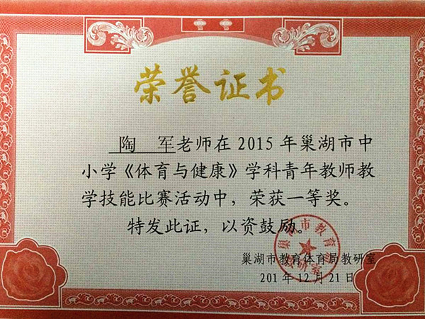 热烈祝贺陶军老师荣获市《体育与健康》学科技能比赛一等奖