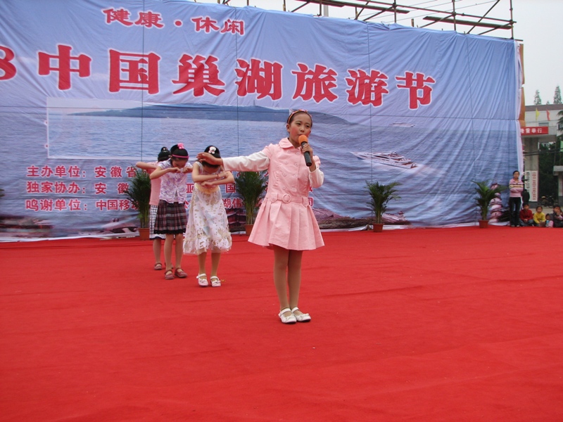 为了积极配合“2008健康·休闲中国巢湖旅游节”活动的顺利开展,展示素质教育成果,我校于2008年4月13日下午,在市区西苑广场举行了专场文艺演出。