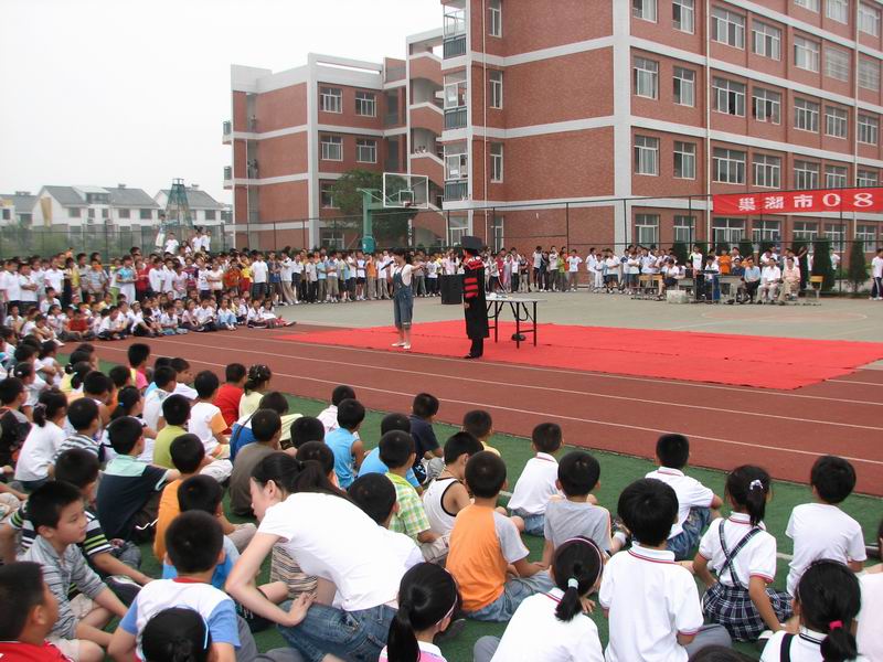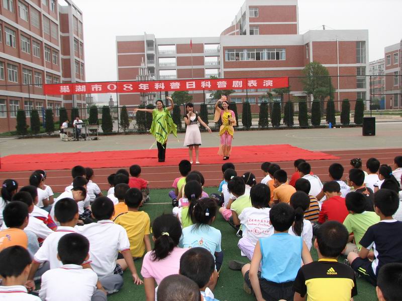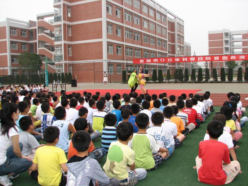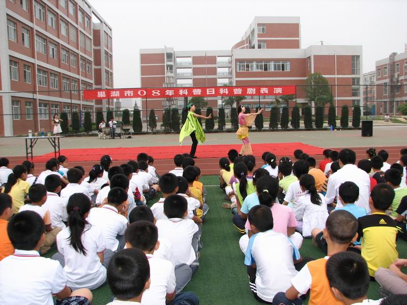 2008年9月27日上午,巢湖市科协按照中国科协和省科协的统一部署,为了提高在校学生对学科学用科学重要性的认识,紧紧围绕“节约能源资源、保护生态环境、保障安全健康”的主题,以全国科普日为契机,在我校成功地为学生们表演了两场精彩的科普剧节目。通过科普剧团演员们生动活泼的表演,深奥的科学知识被浅显易懂地表达出来,使同学们在轻松愉快的氛围中不知不觉地感受到了科普知识的神奇魅力,上了一堂生动的科普教育课,受到师生们的热烈欢迎。