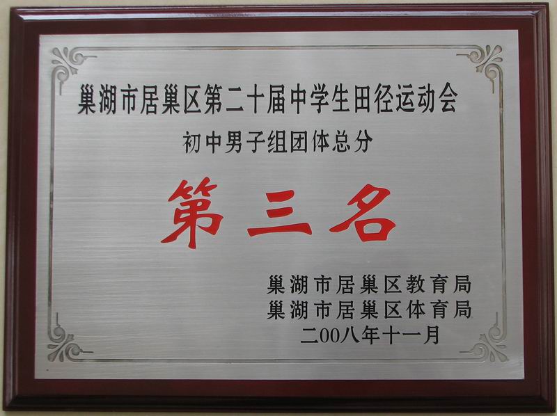 2008年11月2日,居巢区第二十届中学生运动会胜利闭幕。在这届运动会上,我校共派出男8人女8人共16人的队伍参加了居巢区第二十届运动会中初中男子组和初中女子组的比赛。在本届运动会中,我校运动健儿发扬了“更高、更快、更强”的奥运精神和“不怕苦不怕累”的春晖传统,第一次组队参加比赛就取得了初中男子团体总分第三名,初中女子团体第七名的骄好成绩。虽然成绩还有待提高,但他们顶着高温酷暑,顶着寒风小雨,顶着训练条件艰苦、顶着有一名主力运动员受伤的不利条件,仍然在劣境中发挥了自己应有的水平,这正是体育的魅力,正是体育精神的体现。
