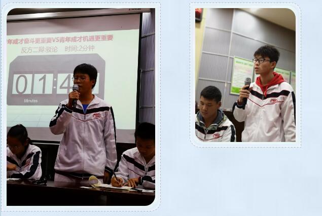 附决赛结果: 一等奖:精英(2)班 最佳辩手:刁俊玲 二等奖:卓越(5)班 最佳辩手:姜静娴 三等奖:清北班 最佳辩手:刁慧莹 四等奖:精英(1)班 最佳辩手:孙 喆 |