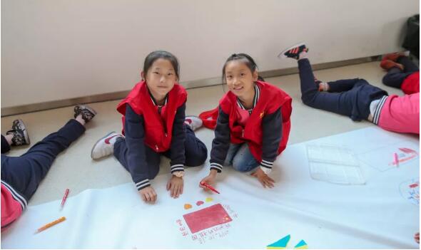在百米画卷上,小记者们绘出了对祖国的热爱。