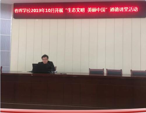 生态环境关乎民族未来和百姓福祉,为传播生态文明理念,建设文明美丽的社会环境,10月23日中午,春晖学校以“生态文明,美丽中国”为主题的道德讲堂活动在亚父校区报告厅举行。