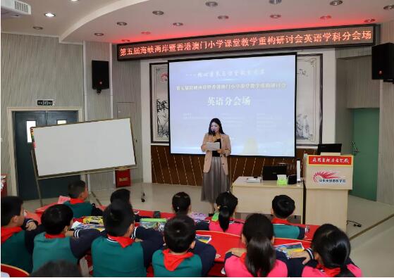聚焦核心素养 推动教学改革 11月1日下午,阳光灿烂,秋叶斑斓,第五届海峡两岸暨香港澳门小学课堂教学重构研讨会英语专场在美丽的春晖学校团结路校区顺利举行。来自两岸四地的多位专家学者、名师、名校长汇聚一堂,以“关键能力培育与英语教学变革”为主题,共同关注在基础教育课堂教学方式改革中如何重新审视和重构课堂教学,重新建构核心素养视野下课堂教学的新理解和新共识。