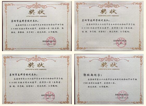 春晖学校小学部在巢湖市历届小学生田径运动会上,也曾4次获得团体一等奖。