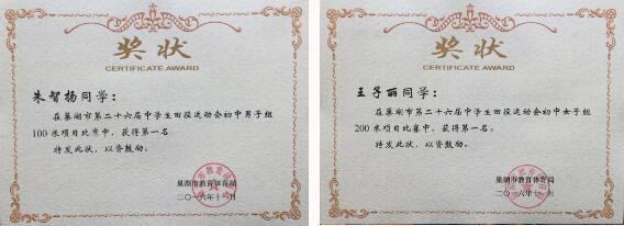 在2018年安徽省第十四届运动会青少年部田径比赛中,朱智扬曾代表合肥市参加4x100米比赛(其余三棒为外校学生),荣获第二名!春晖学校还荣获“安徽省第十四届运动会体育人才贡献奖”。