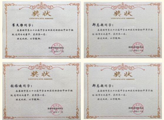 不仅田径、橄榄球成绩优异,我校运动员其他项目比赛水平也是不遑多让,比如2015年5月举办的巢湖市中小学生乒乓球比赛中,我校运动员荣获初中男子团体第一名、高中男子团体第二名和小学女子团体第三名。