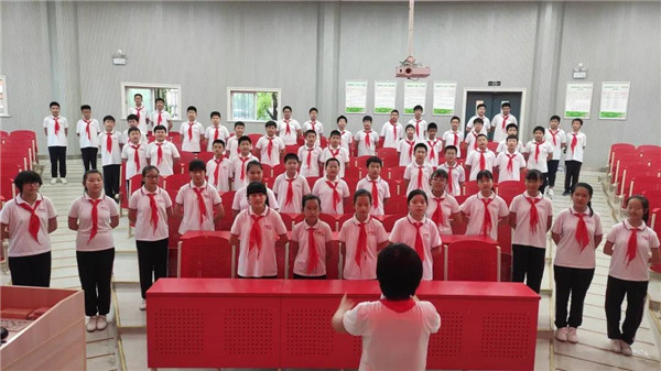 101班的萌娃们活泼可爱,献上了动听的《歌唱祖国》;102班和607班展现了不同风格的《红旗飘飘》,一个洋溢着期待,一个彰显着决心;103班换装上阵,声情并茂地演绎了《共产儿童团》的机智;203班在手语舞蹈中带来一首优美、舒缓的《国家》;301班、302班的演唱气势昂扬,小小的身体里迸发出团结的力量;601班、603班的队员们动作整齐流畅,歌声铿锵有力,带来了《团结就是力量》《没有共产党就没有新中国》等耳熟能详的歌曲;605班一曲《七子新歌》款款深情、旋律悠扬,将一腔爱国热血与满满团聚情怀完美融入其中。