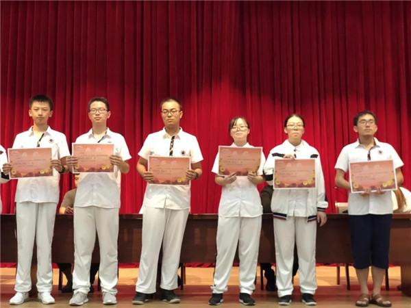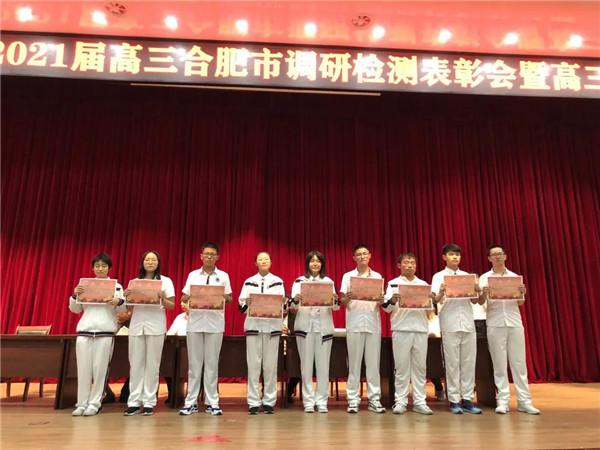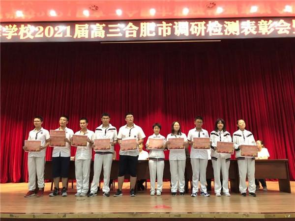 会上,高三年级副主任王娟宣读了合肥调研检测受表彰学生名单,参会的行政人员为取得单科优异成绩的同学和获得文理科一等奖的同学们颁发了奖状。