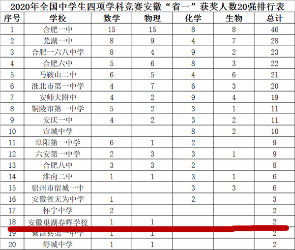 01 2020年全国中学生学科竞赛成绩于日前揭晓,春晖学子不负众望,共有2人获得安徽省一等奖,2人获二等奖,5人获三等奖! 在全国中学生物理学科竞赛中(安徽赛区),春晖学校高三(4)班章天宸同学参赛(因名额所限,仅一人参赛),喜获安徽省一等奖!
