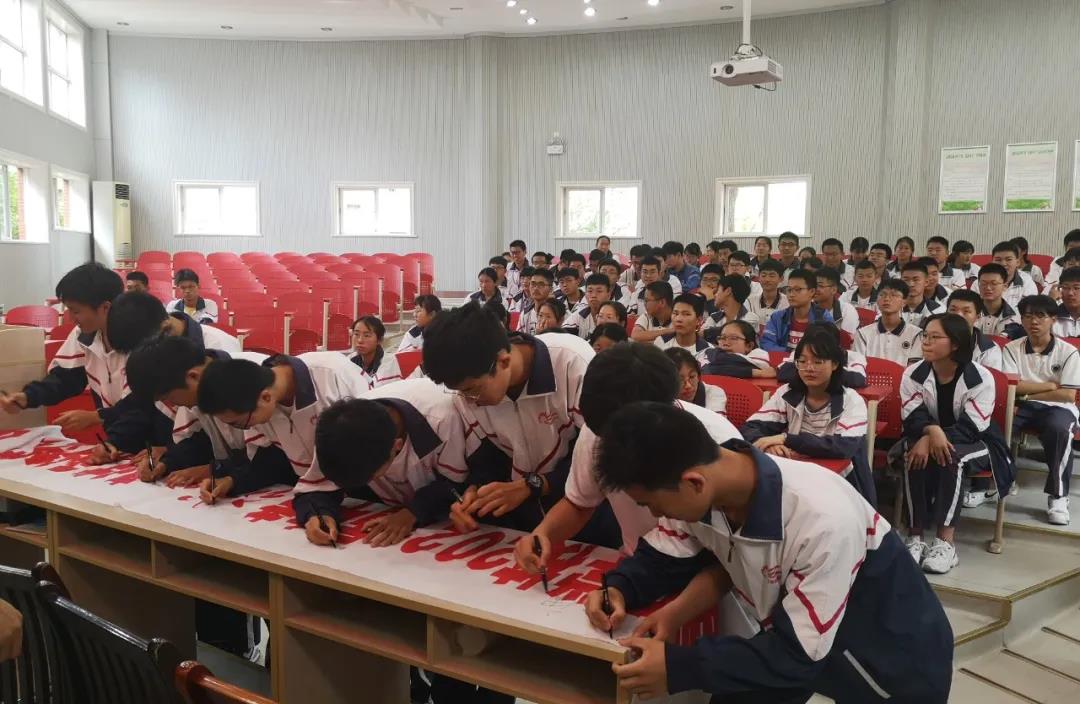 现场九年级毕业生在老师的指引下依次进行了诚信考试集体签名。