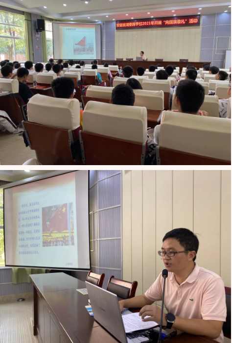 为庆祝中华人民共和国成立72周年,引导同学们参与爱国主义教育活动,维护国旗尊严,9月28日,在春晖学校德育处、校团委的组织下,高中部程祖英老师为高一年级的同学们带来了一场以“向国旗敬礼,做守法公民”为主题的宣讲活动。