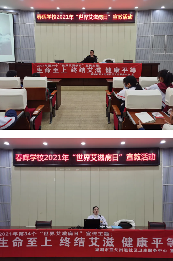 2021年12月1日是第34个“世界艾滋病日”。为普及艾滋病防治知识,增强学生自我健康保护意识,11月26下午,春晖学校邀请亚父社区卫生服务中心防艾工作人员来校开展了防艾知识宣教活动。