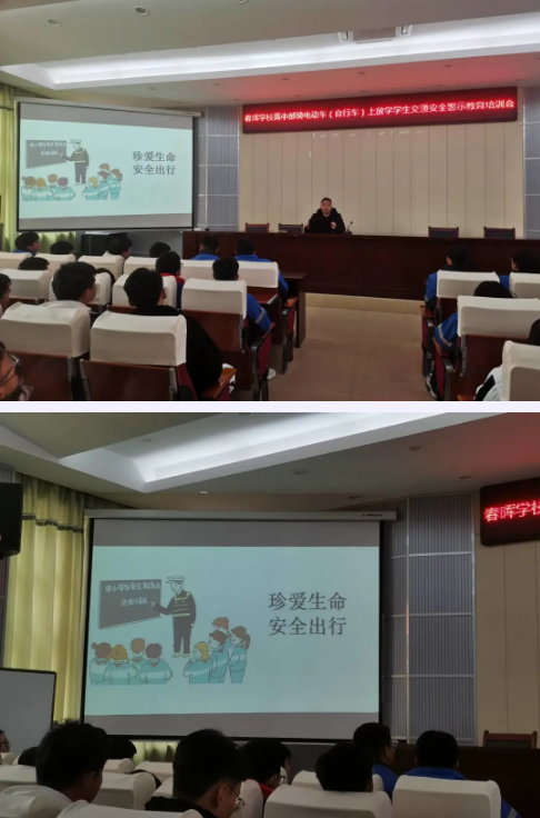针对部分同学骑电动车或自行车上学这一情况,高中德育处韩文忠主任特地为同学们召开了一场骑电动车(自行车)上放学学生交通安全警示教育培训会,教育同学们一定要遵守交通规则,珍爱生命,安全出行。