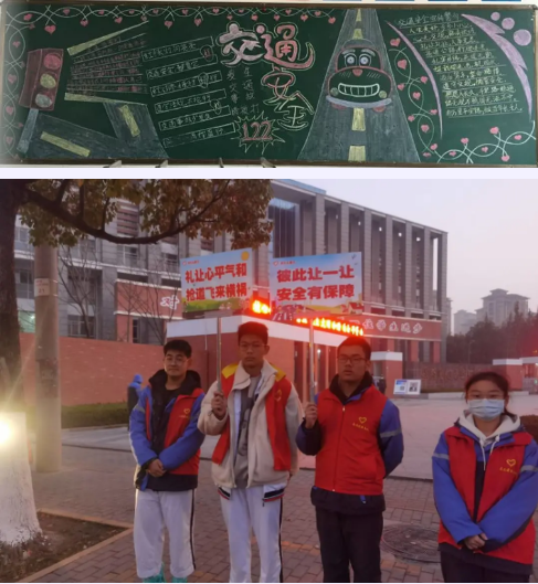 上大周,各班按照德育处的布置分别完成了交通安全黑板报的设计与绘制。利用大周放假,学校还通过《致家长一封信》的形式,提醒家长配合学校对子女进行必要的交通安全提醒,同时自己也要以身作则,遵守交通法规。本周,各班还利用每周的班会课播放了交通安全教育宣传片,再次提醒同学们务必提高自身的安全意识。在德育处和校团委的组织下,高中部的志愿者还走上了街头、路口,引导社会人士和家长有序参与交通,自觉遵守交通法规。