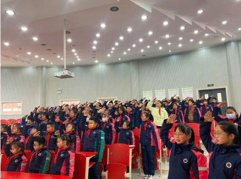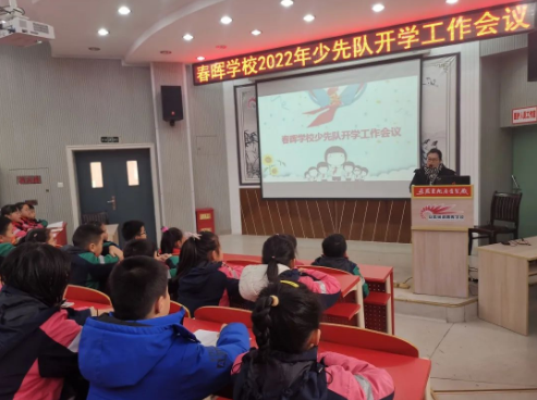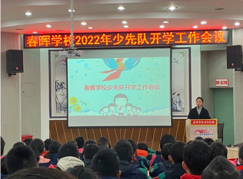 2月23日,春晖学校多功能厅响起了嘹亮的少先队队歌,2022年新学期少先队工作会议在这里召开。