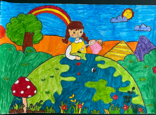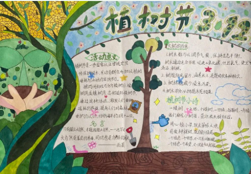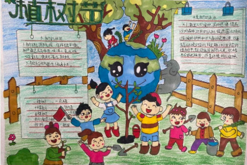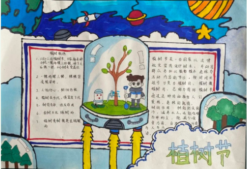 2 小手绘自然 一二三年级的同学们以“爱护地球”为主题开展绘画活动,四五六年级的同学们则以“植树节”为主题画起了手抄报,同学们热情参与,作品赏心悦目。