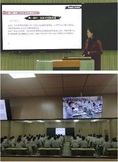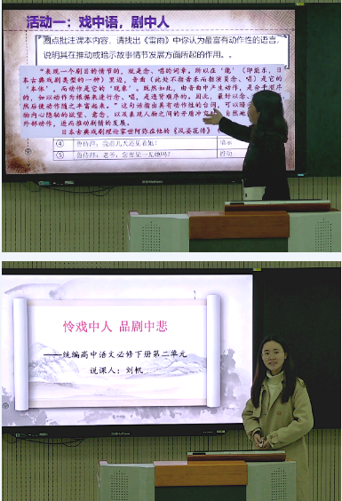 备课组会议开展前,高二语文组张萌、刘帆老师和高一语文组高香艳老师分别进行第二单元“良知与悲悯”单元和课时的教学说课,然后由高一语文组石强老师在录播室进行有生授课,语文组其他老师听课后开展了交流活动。