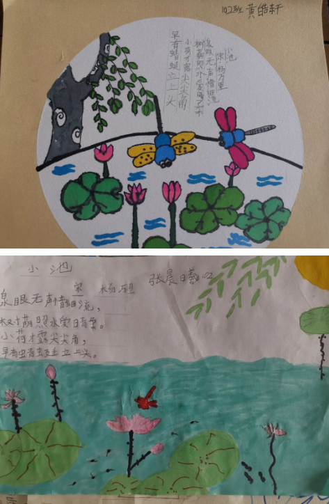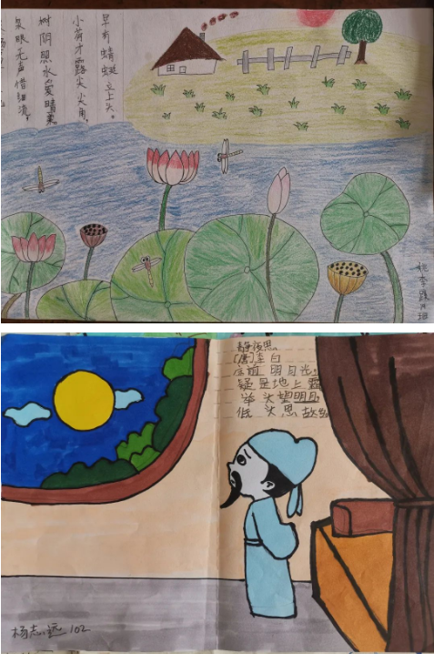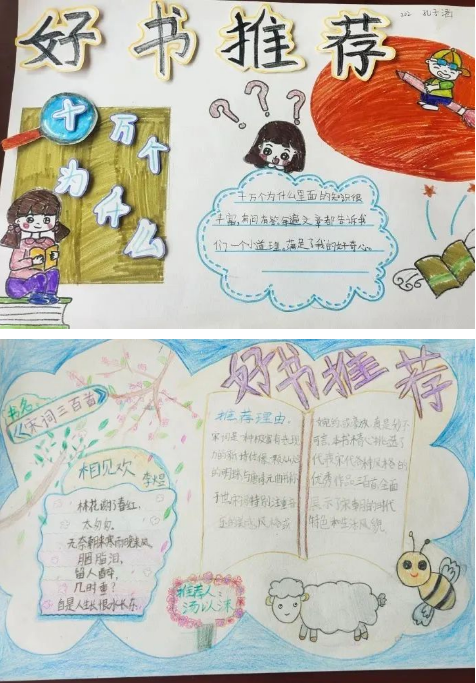 你瞧,一年级小朋友的古诗配画让古诗焕发了生机;二年级的好书推荐卡激发了小朋友们阅读的兴趣。