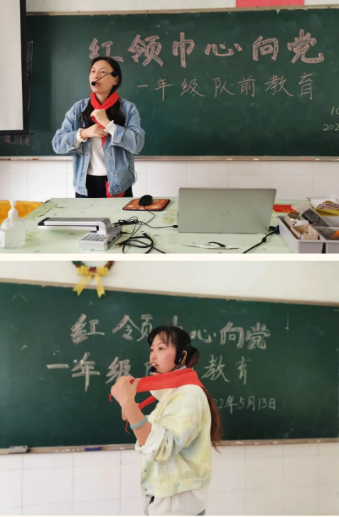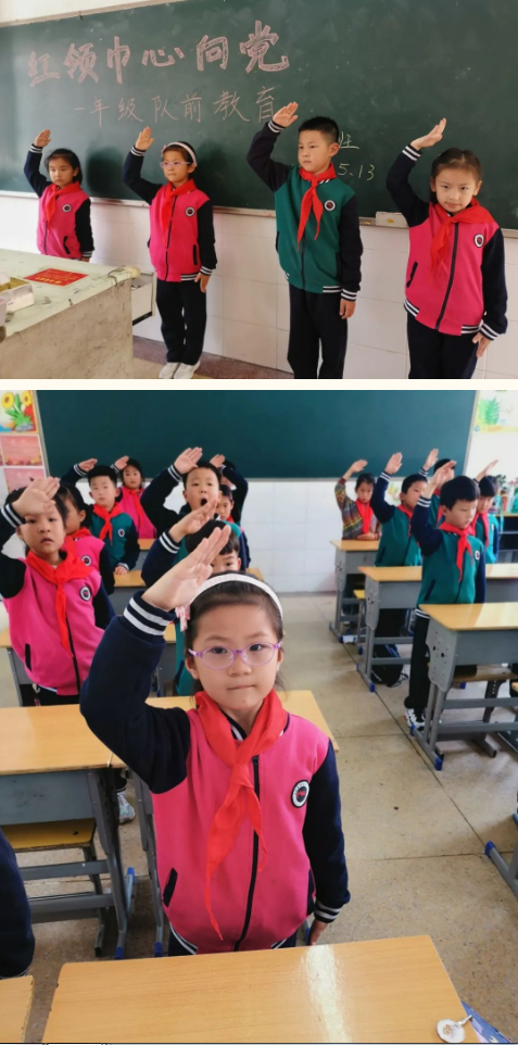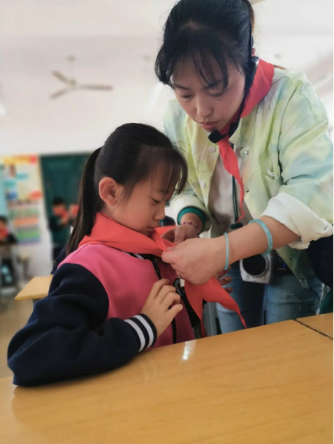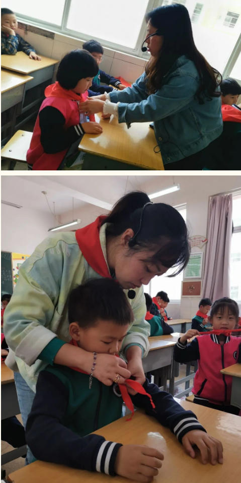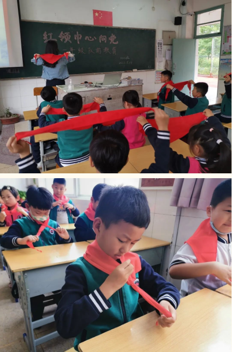5月19日下午队前教育课,一年级的两位辅导员老师细致地为同学们讲解了入队知识“六知六会一做”,并手把手地教同学们如何正确标准地敬队礼、宣誓、佩戴红领巾。一年级的同学们听得极其专心,都热切盼望着能早日成为一名光荣的少先队员。