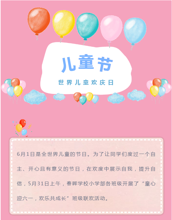童心迎六一,欢乐共成长——春晖学校小学部开展庆六一系列活动