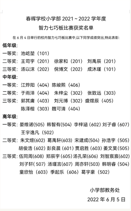 七巧板起源于中国,被称为“东方魔板”。“小小七巧板,内涵大学问”,它不但对于学习数学有着巨大帮助,还可以培养孩子们的观察力、想象力、形状分析以及动手操作能力,是启发孩子们智力的良好伙伴。6月4日下午,春晖学校小学部举行了一场别开生面的“趣味七巧板”比赛。