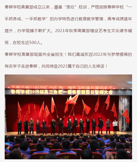 今天的一个决定,明年的一个惊喜!——春晖学校高复部招生火爆进行中!