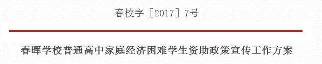 春校字[2017]7号 春晖学校普通高中家庭经济困难学生资助政策宣传工作方案